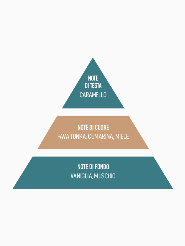 Una fragranza gourmand tra le più amate e apprezzate che appartiene al gruppo ambrato vanigliato. Tra le sue note di testa troviamo il caramello, nel cuore il miele, la cumarina e la fava tonka, infine le note di fondo sono caratterizzate dalla vaniglia e dai muschi bianchi. Le sue note olfattive stimolano i ricordi ed evocano momenti felici che riportano all’infanzia come il profumo del latte e dei biscotti fatti in casa, appena sfornati.